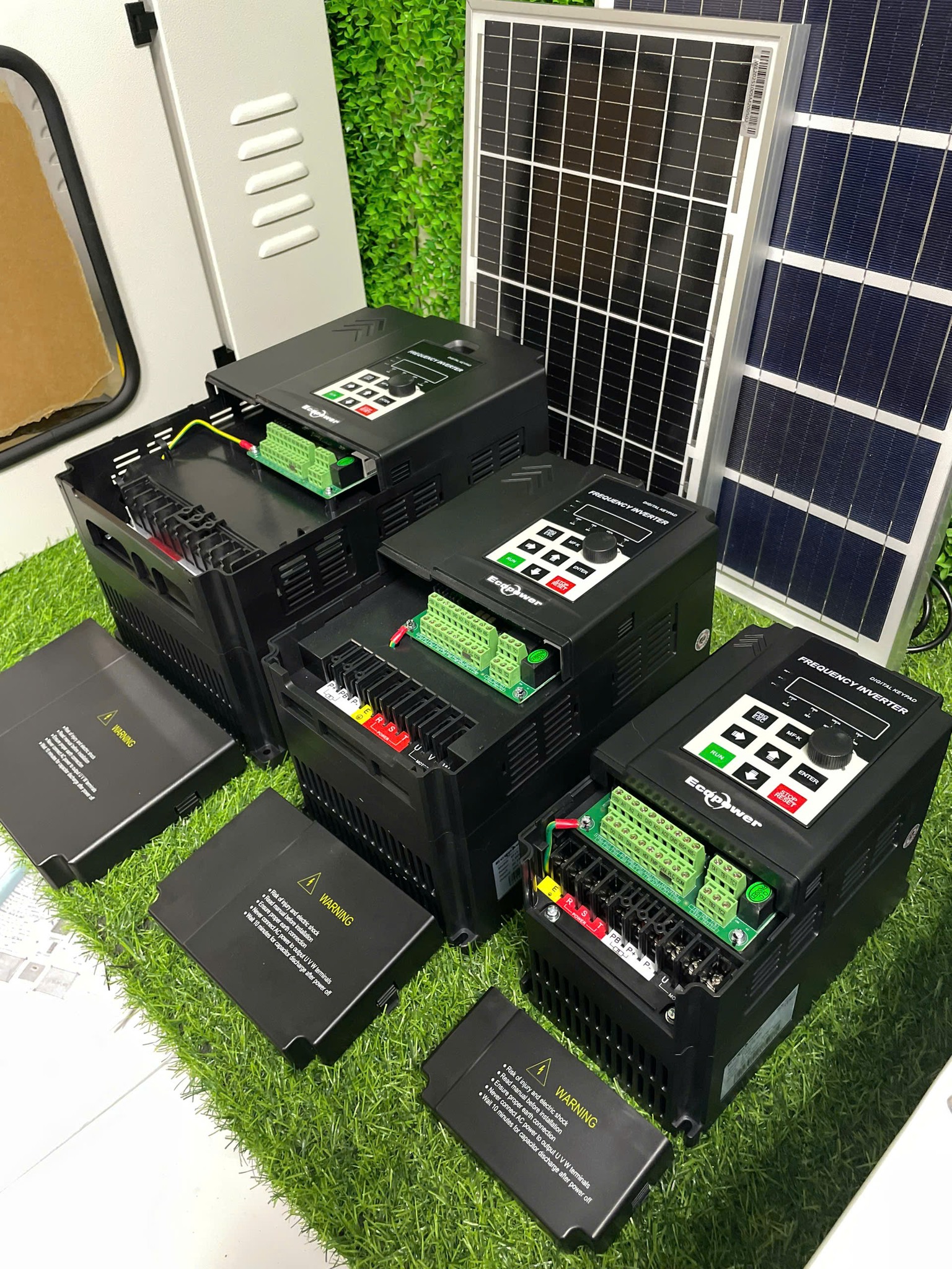 EcoPower EP15-SP3-7d5 là biến tần chuyên dụng cho hệ bơm nước năng lượng mặt trời, tích hợp MPPT để tối ưu công suất tấm pin,