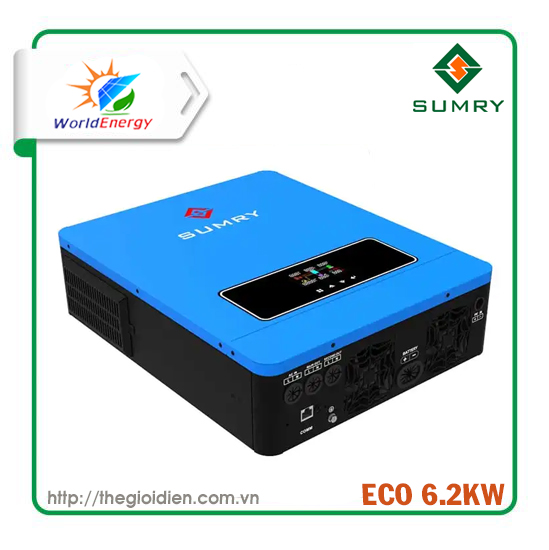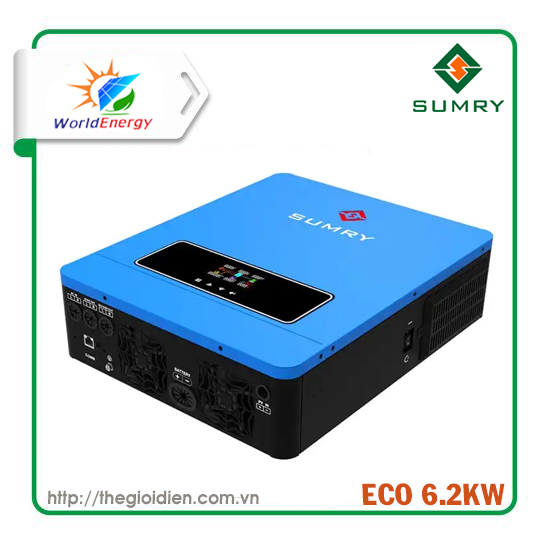 - Inverter Hybrid Sumry MPS-VIII ECO 6.2KW là biến tần có đầy đủ chức năng của một Inverter hoà lưới và Inverter độc lập: Hòa lưới, bù lưới, hòa lưới có dự trữ (kết hợp với pin/acquy), chạy độc lập.