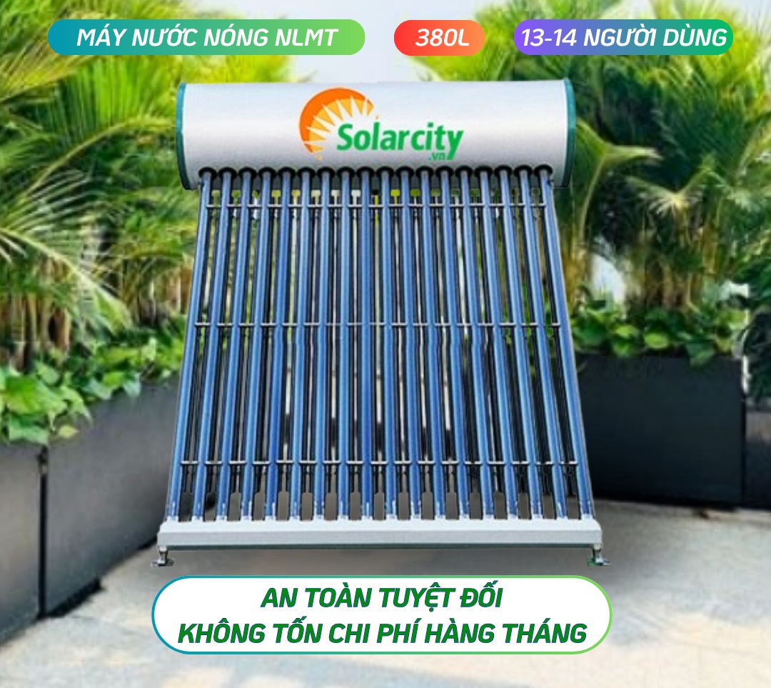 Ghi chú: Máy nước nóng năng lượng mặt trời Solarcity bảo hành 10 năm ống, linh kiện 1 năm